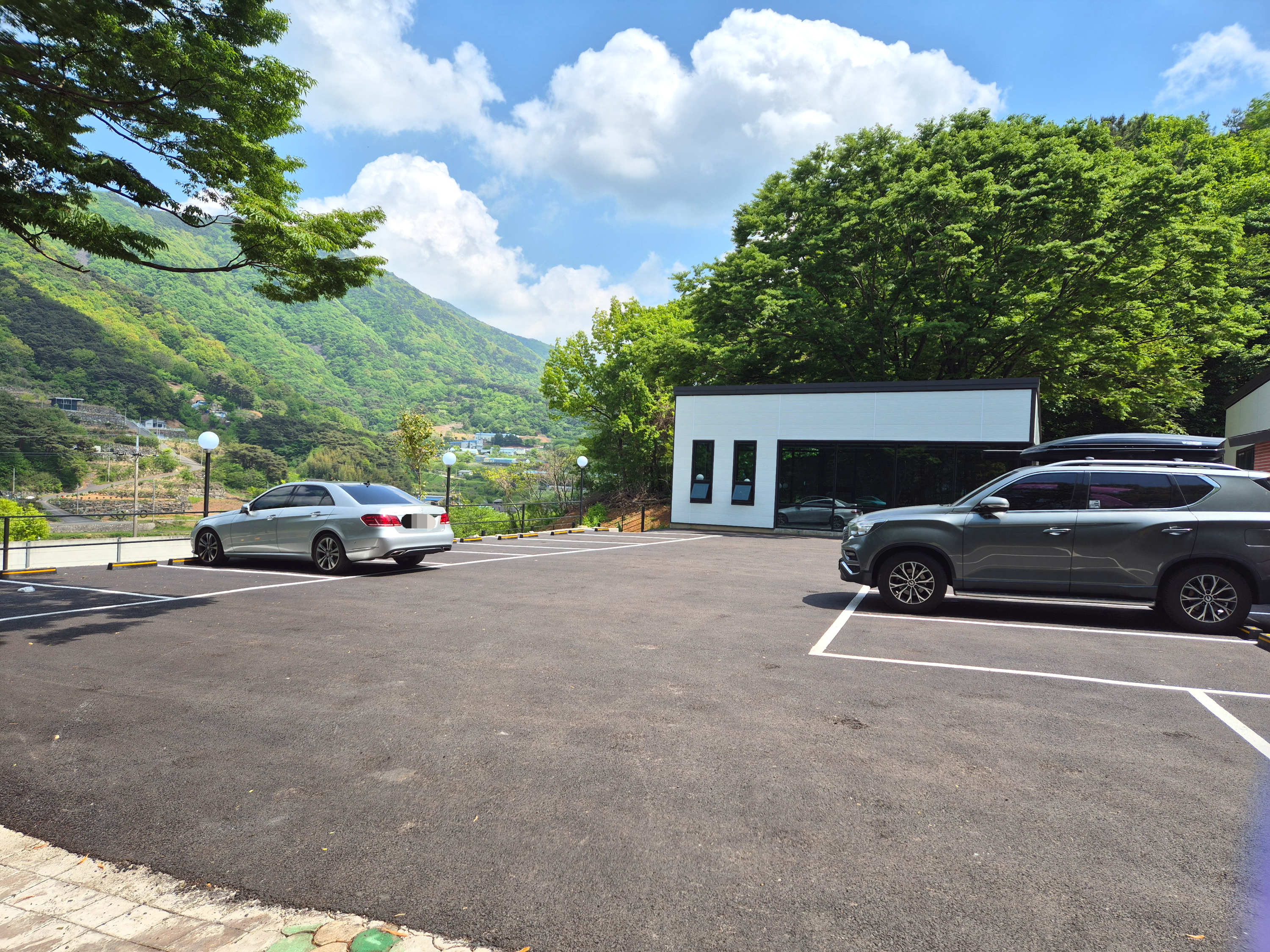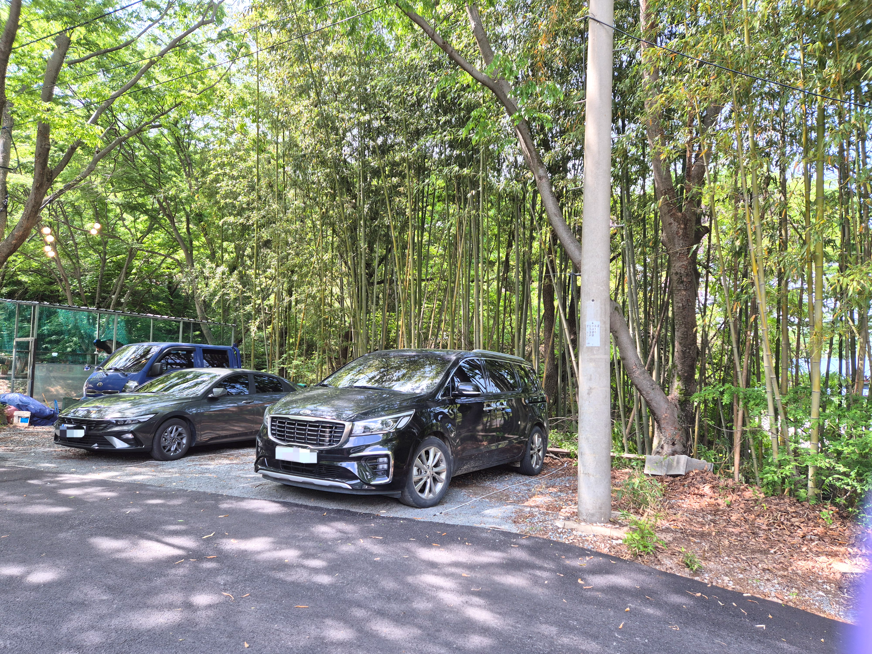 가게 앞 곳곳에 주차장이 있어 여러 대를 수용할 수 있는 대형 주차장입니다.