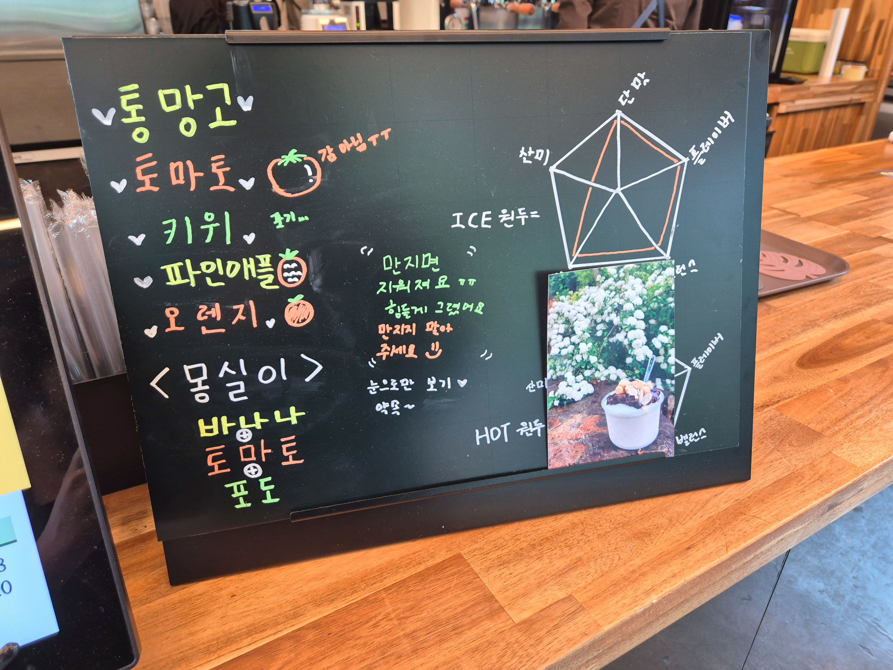 저는 이 카페의 시그니처메뉴인 "몽실이 음료"를 시켰어요.