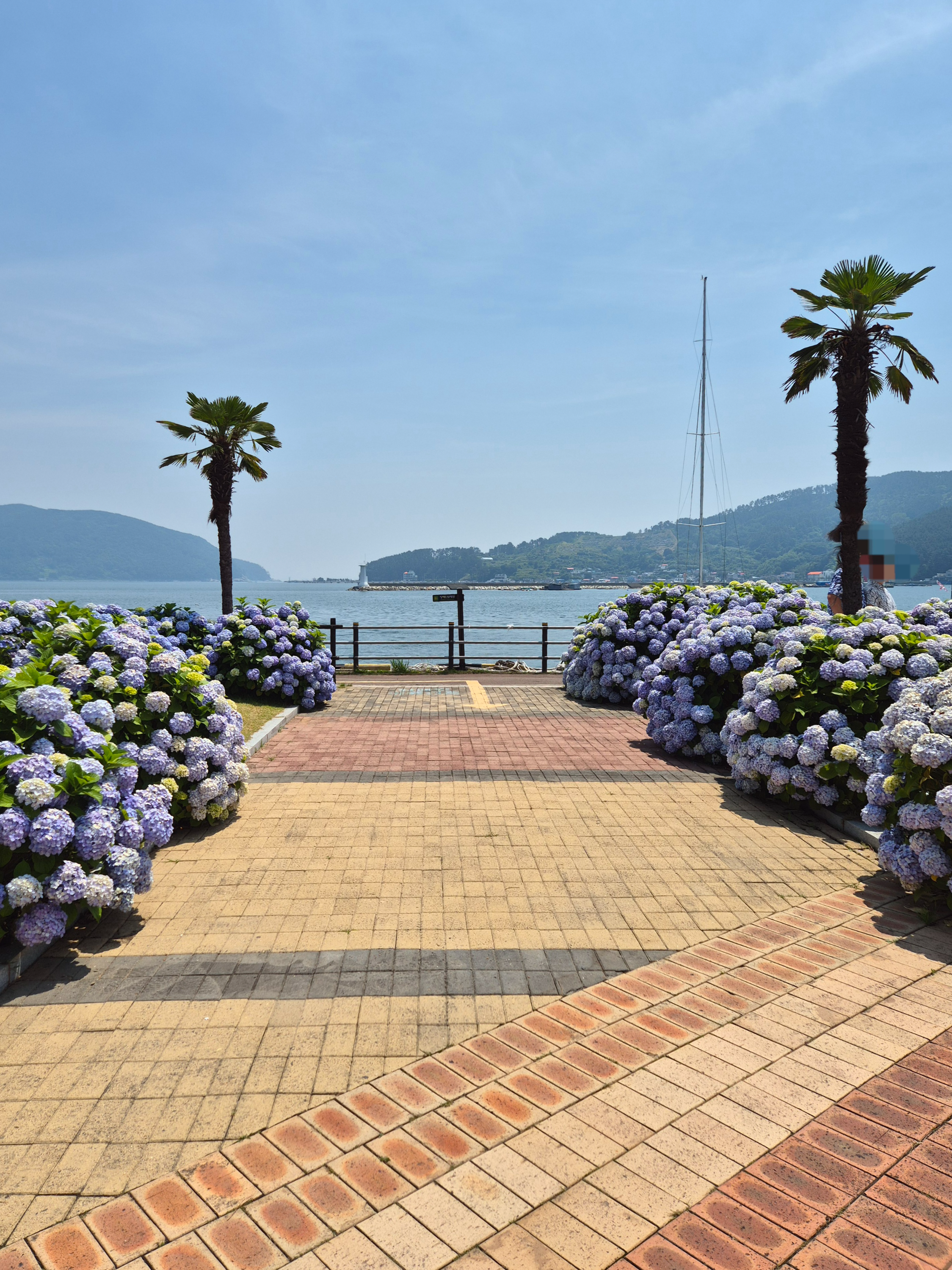 바다 바로 앞에 거대한 수국들과 야자수가 너무너무 예뻤어요.