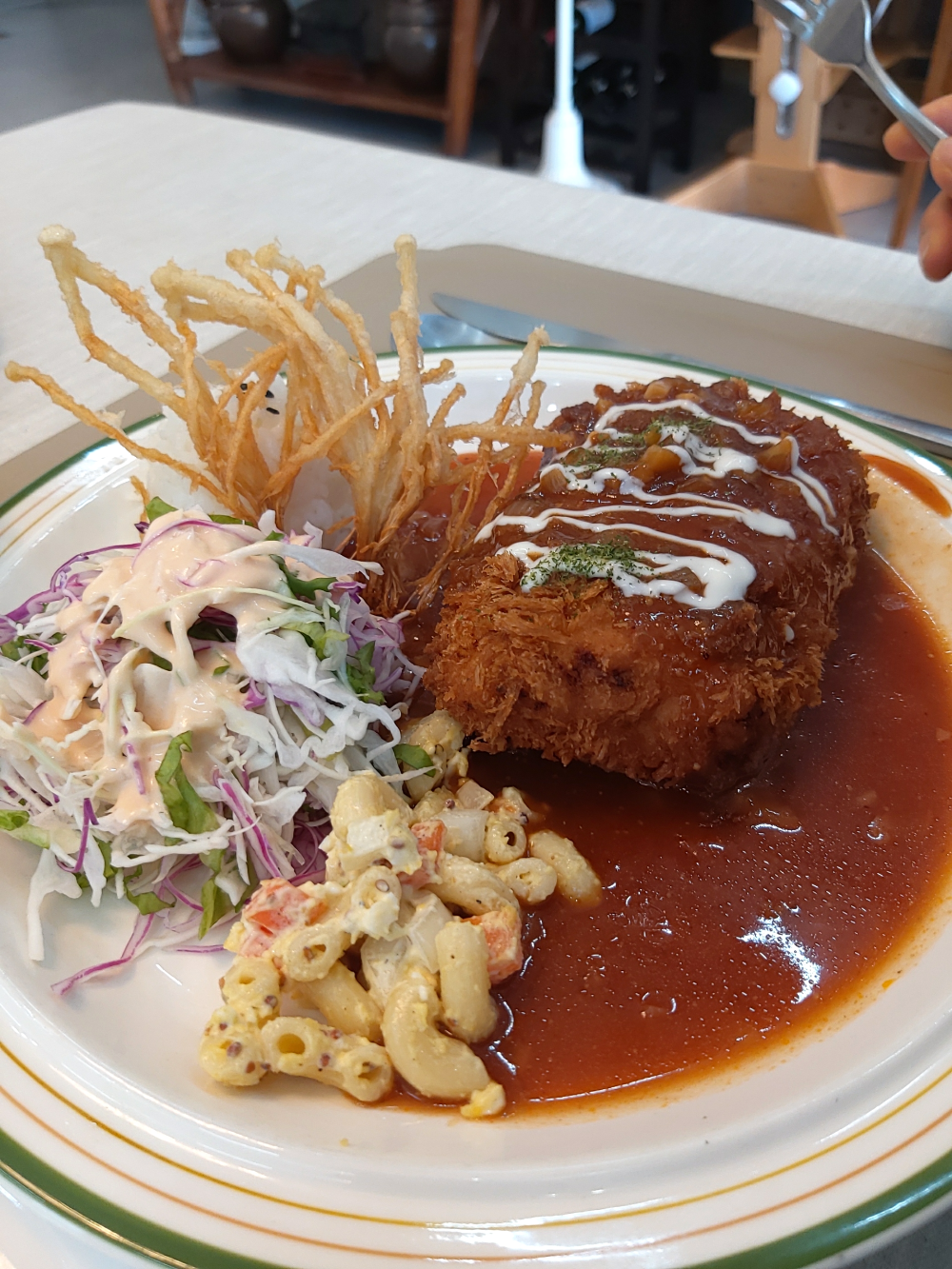 함박스테이크는 되게 부드러운 편이고 돈까스는 바삭바삭해서 맛있었어요.