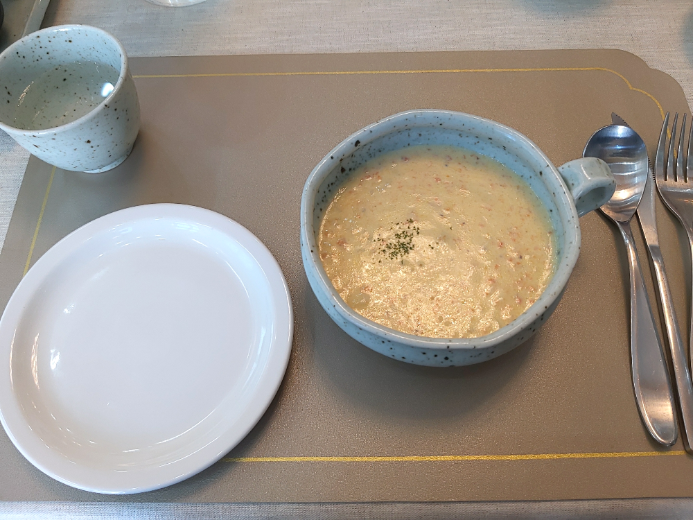 (*주의* 스프 나오는 돈까스나 함박스테이크 메뉴를 시켜야 스프가 포함되어 나와요)