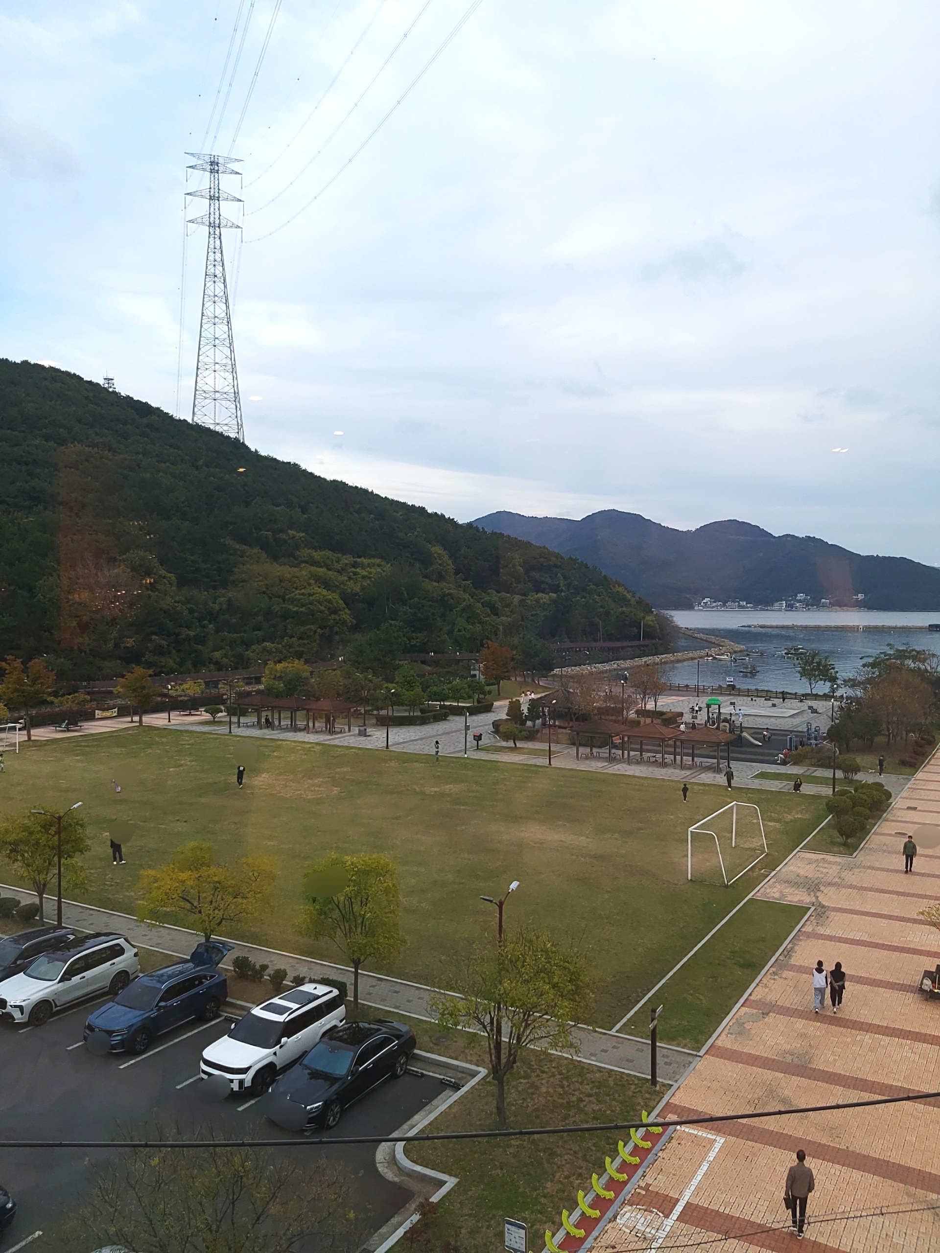 우선 바로 앞에 있는 운동장에서 공놀이를 할 수 있고 바닷가 앞 평지에 돗자리를 깔고 피크닉을 할 수도 있어요.