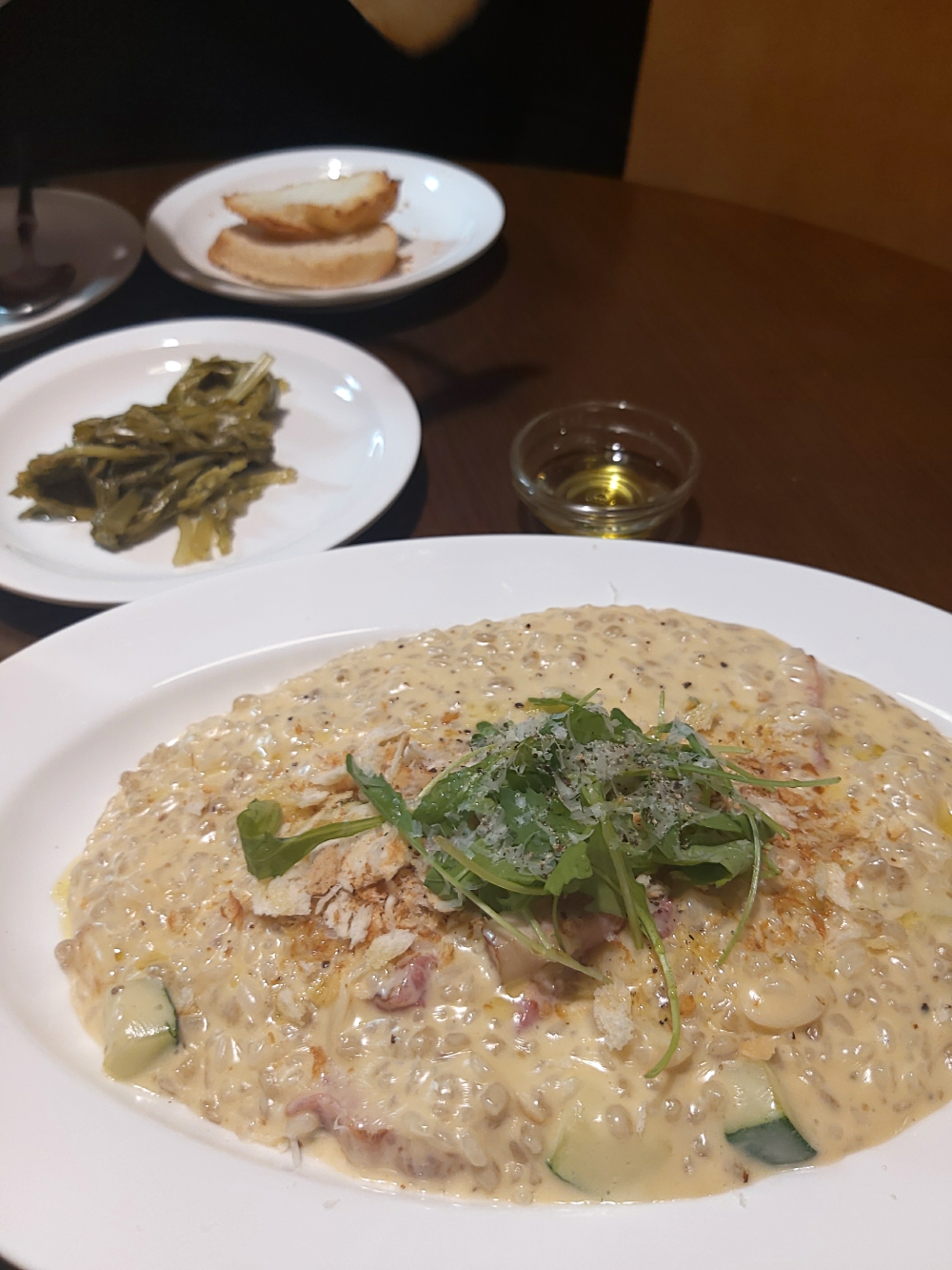 크림 리조또 안에 든 보리쌀?같은 식감이 느껴지는 게 있는데 그게 알알이 씹혀서 맛있었어요.