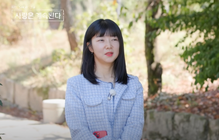 22기 당시 첫인상 4표를 받았고 영수와 영철의 사랑을 받은, 머리부터 발끝까지 완벽한 자칭 ‘사기 캐릭터’입니다. 두 남자 사이에서 고민하다 열린 결말로 남겨두겠다며 최종 선택을 하지 않고 끝났습니다. 고민했던 분(아마 22기 영수)과 좋은 오빠 동생으로 잘 지내기로 하고 여기 나왔다고 합니다.