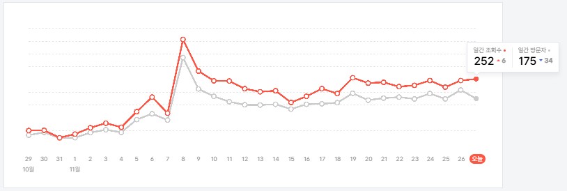 그래도 매일 포스팅하니 글이 쌓여 꽤 안정적인 그래프가 되었습니다.