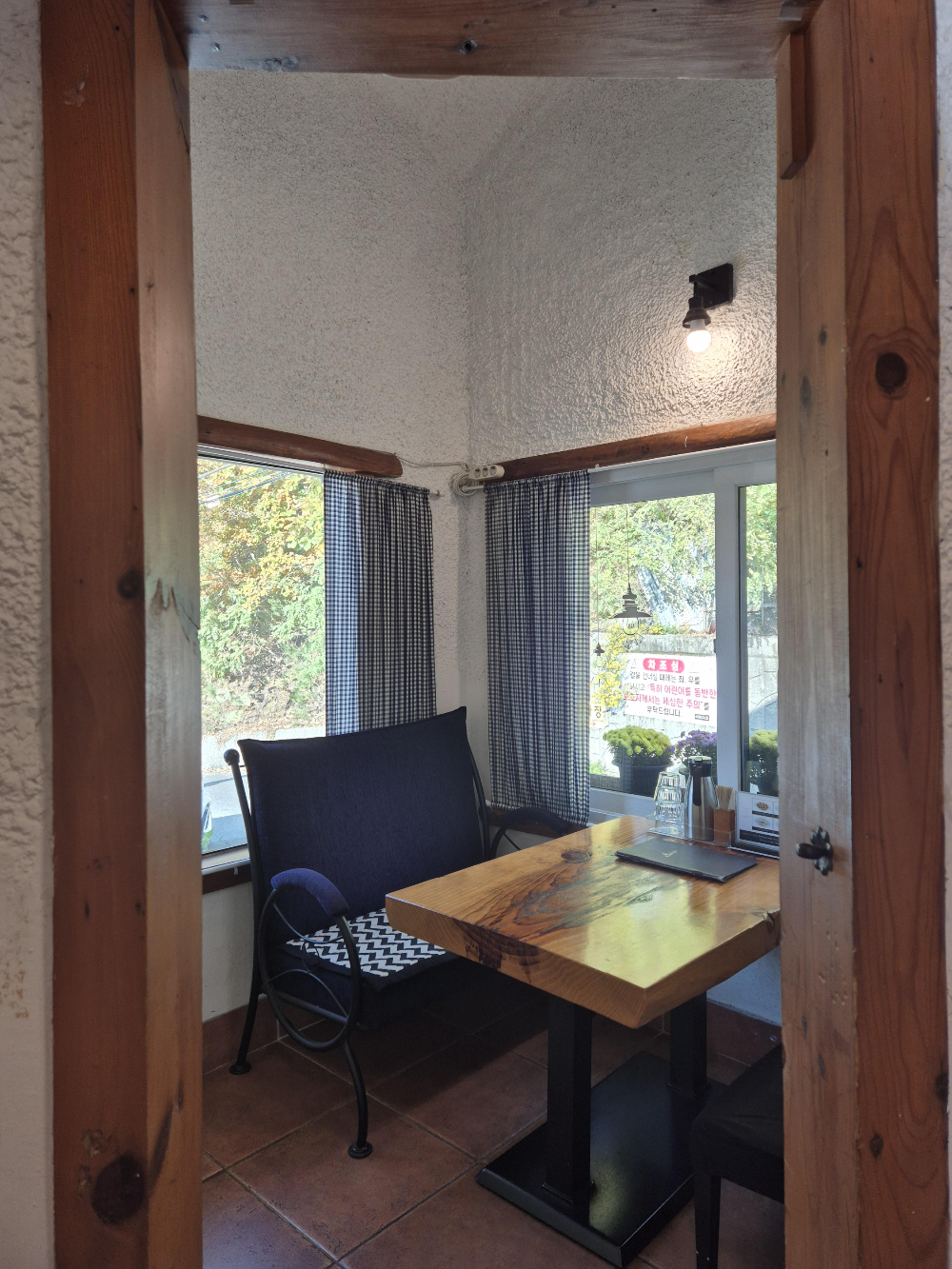 실내에 들어가면 카운터가 있는데 안내받은 자리에서 메뉴를 정한 뒤 카운터에 가서 주문하고 선불로 계산해요.