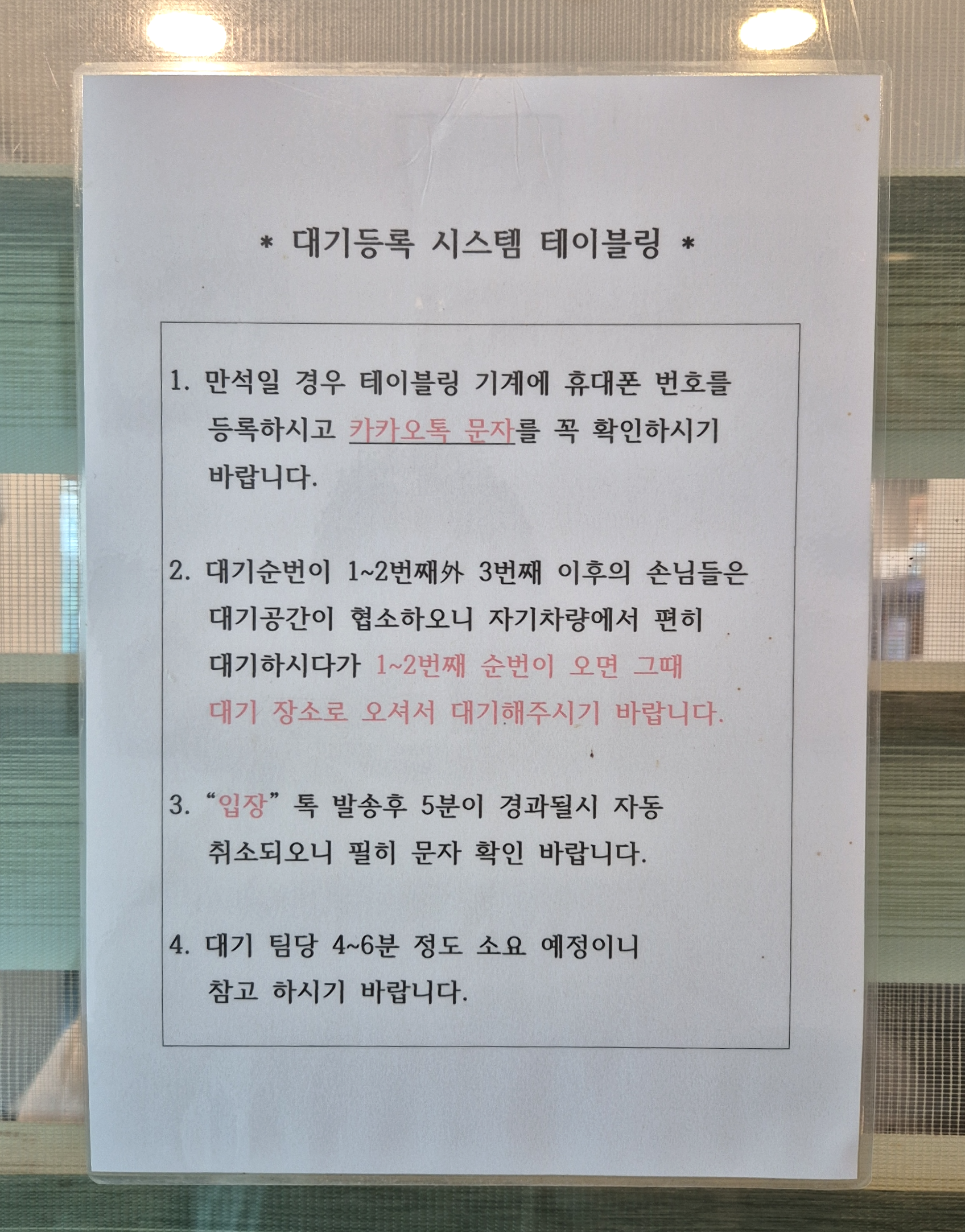 피크 시간에는 대기가 생길 수 있으니 테이블링 서비스를 이용하도록 안내가 되어있어요.