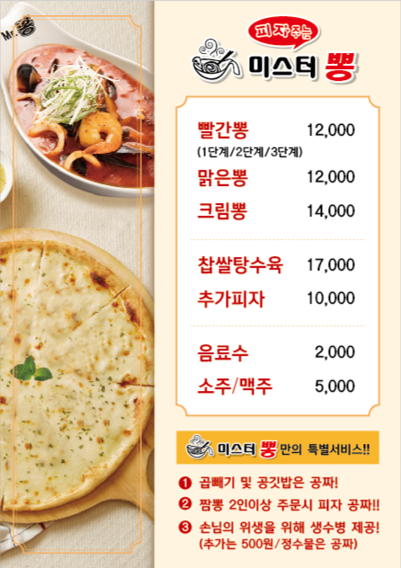 미스터뽕 짬뽕은 흔하지 않은 크림짬뽕이나 맑은 국물의 짬뽕 메뉴가 있어서 특이해요.