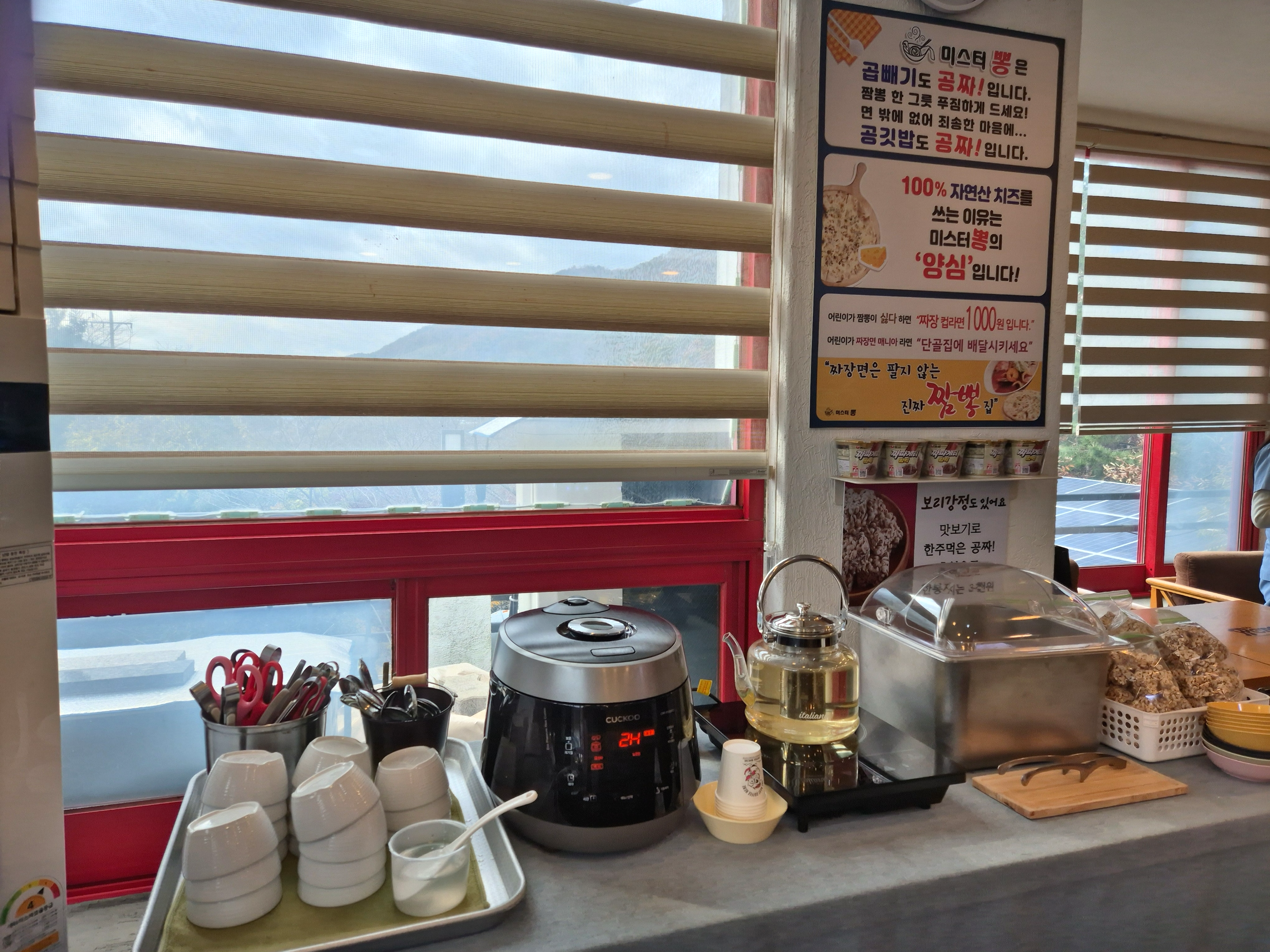 아이가 짬뽕을 싫어하면 먹을 수 있도록 짜장 컵라면도 1,000원에 구매할 수 있도록 준비해놓으셨어요.