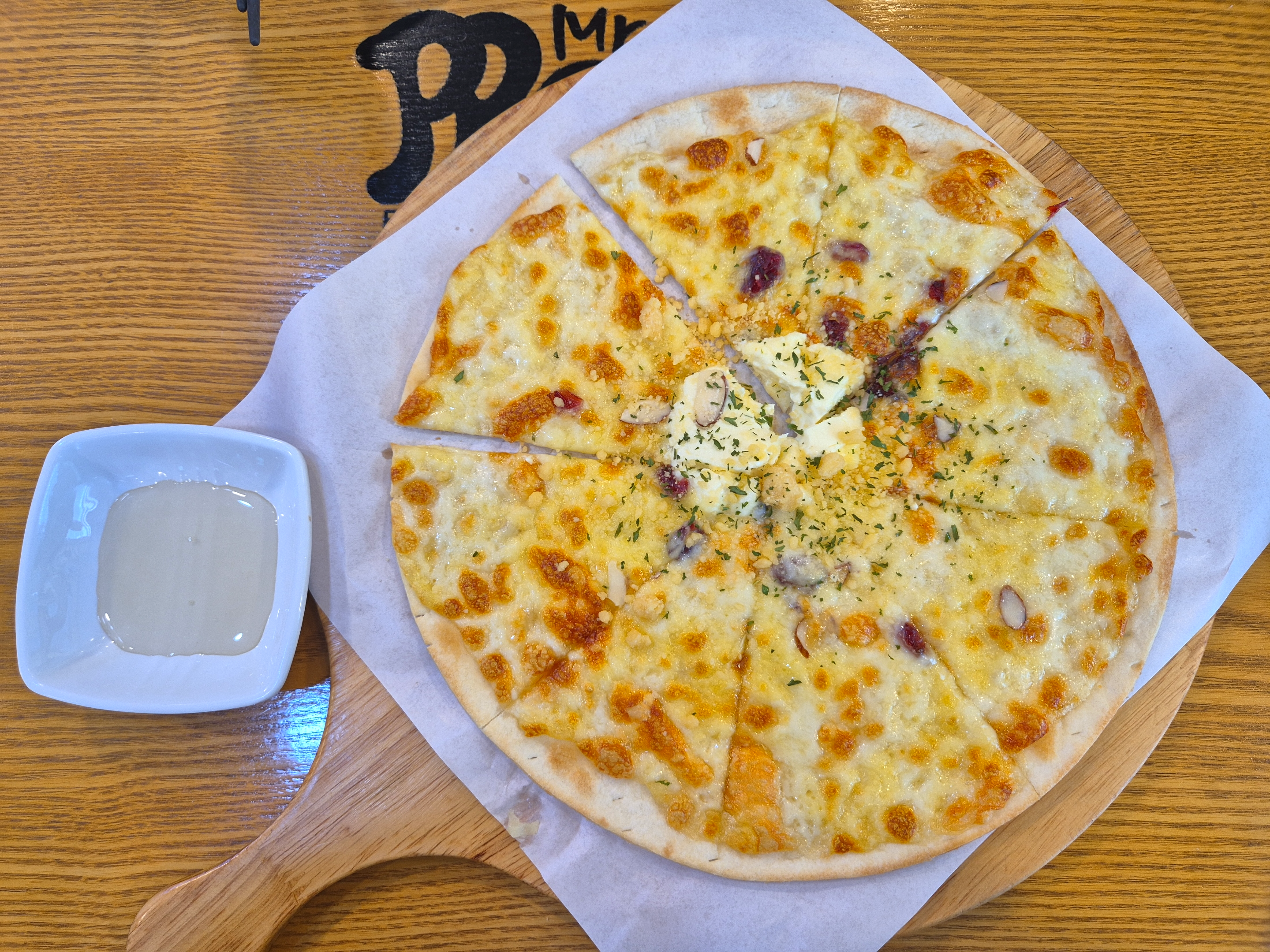 피자는 크림치즈에 쿠키가루가 올려져 있어고 얇고 바삭해서 진짜 맛있습니다.