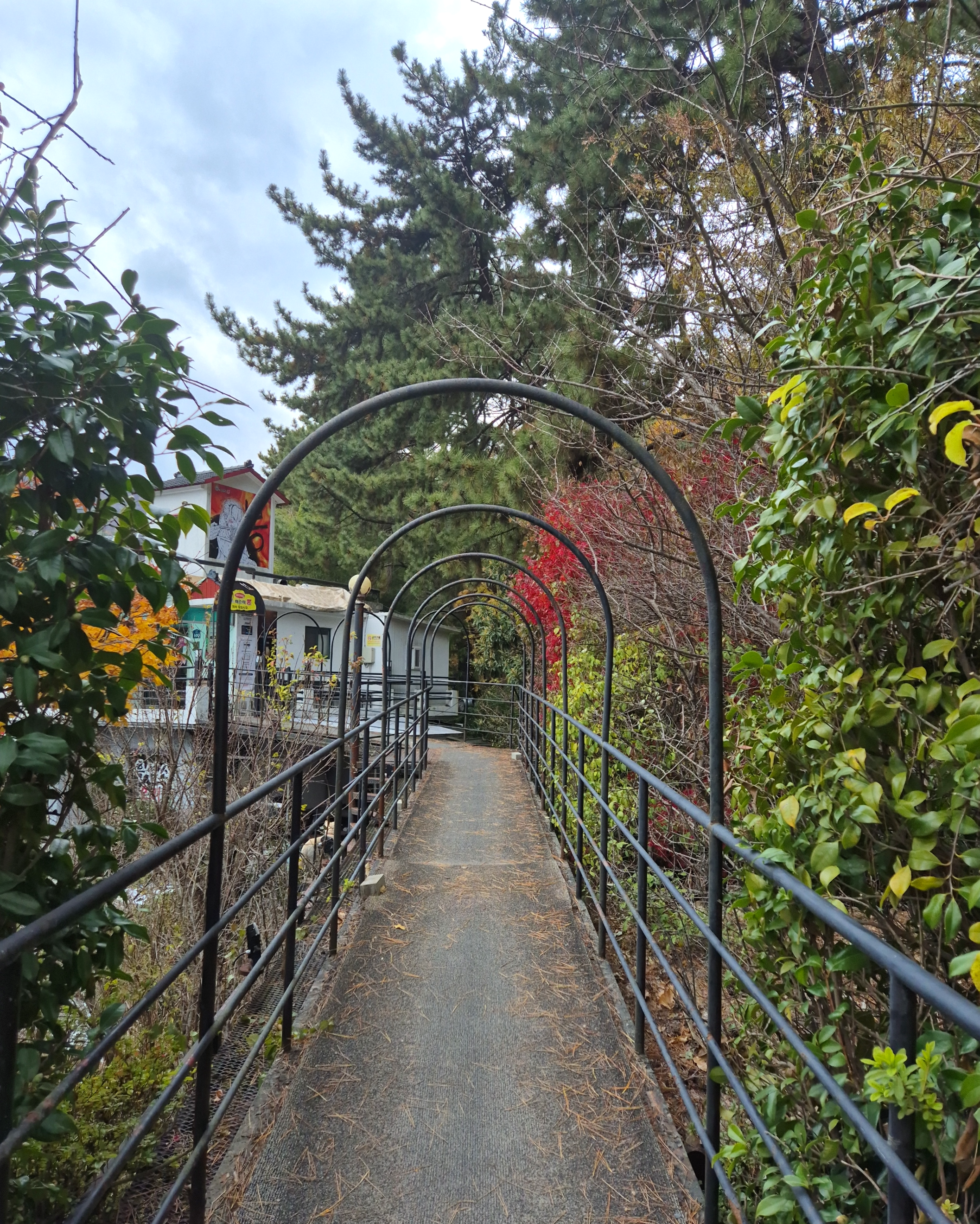 숲 옆을 지나는 구름다리를 건너면 가게 입구가 나와요.