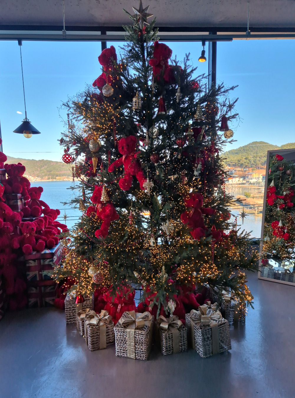 섬섬에서 이번 겨울에 대형 트리와 빨간 곰돌이로 이곳저곳을 꾸며놓았는데